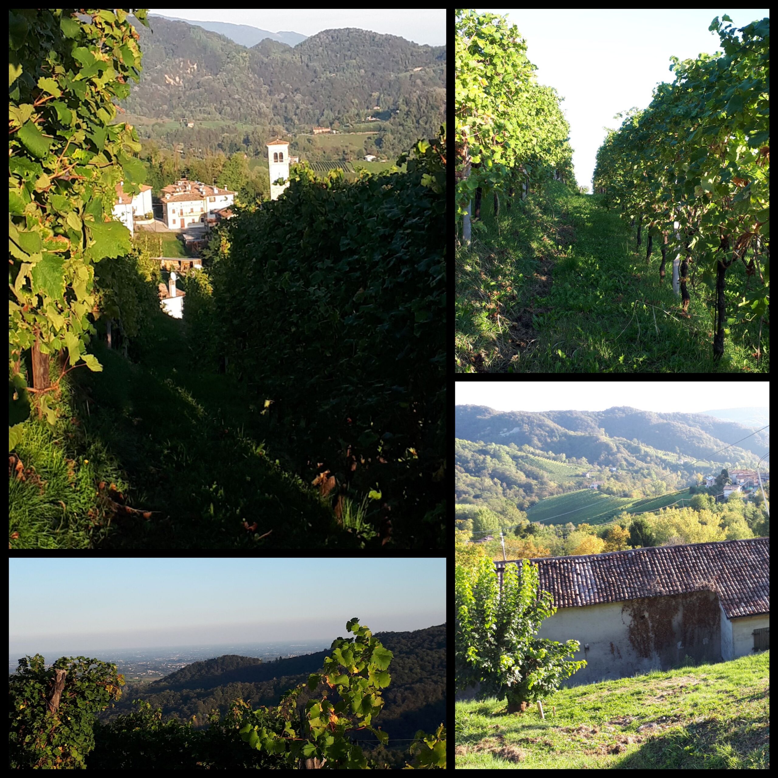 In mezzo al verde dei vigneti collinari del Prosecco.
